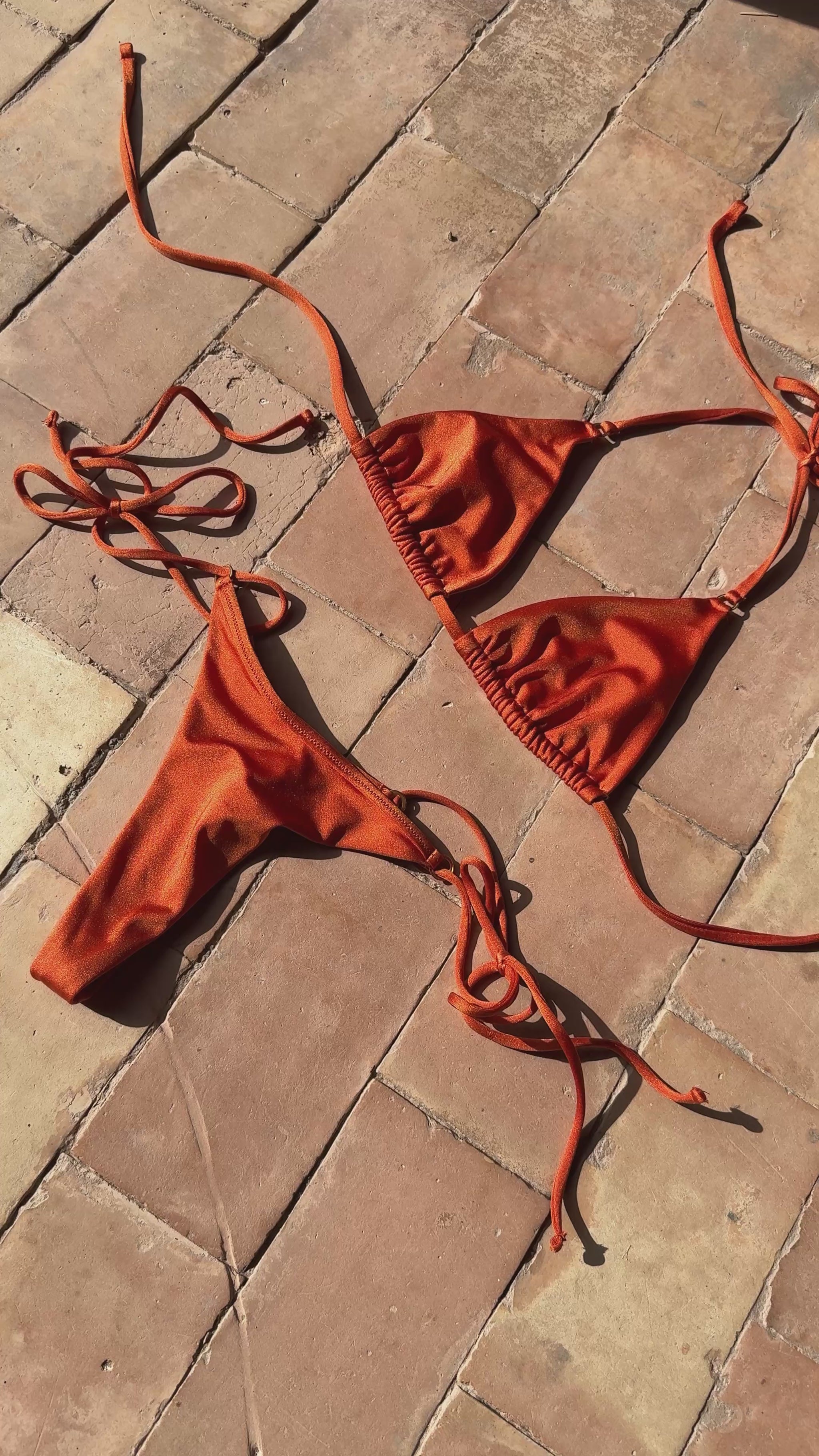 Our signature triangle silhouette is crafted from a luxurious Italian yarn blend and finished with two gold-plated rings sourced from France.